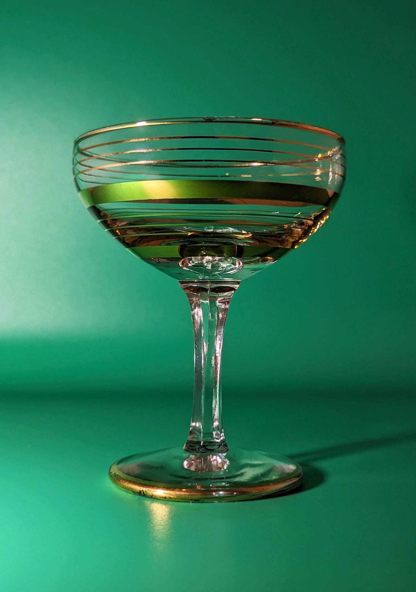 This vintage coupe features a gold striped pattern that will bring a touch of retro glamour to cocktail hour.