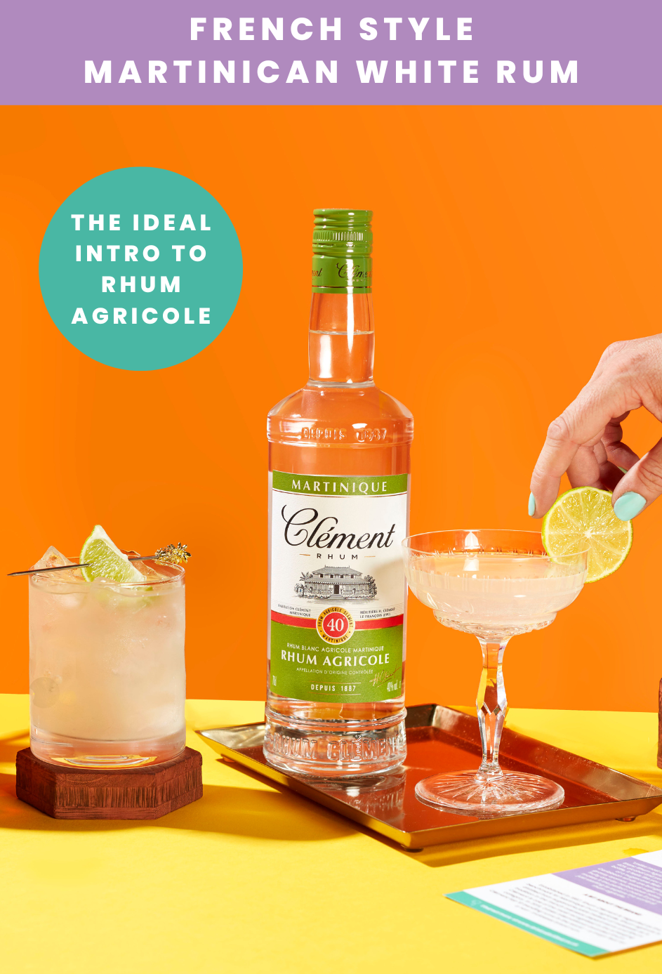 Traditionally in Martinique, people drink rhum agricole in a cocktail called Ti Punch (translation: Small Punch). This is a very simple mix of rhum agricole, lime, and sugar with no ice. You’ll be offered the rum, lime and sugar and it’s down to you to decide how much of each ingredient you want to add to make it perfect for you. Alternatively, Clément Blanc Rhum Agricole brings a unique freshness to classic cocktails like the Daiquiri or the Mojito; or you could enjoy it simply with coconut water and fresh lime or with a mixer of your choice. |